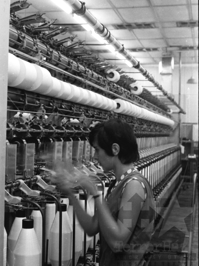 textilipar selyemgyár üzemcsarnok fonal orsózó Tolna Tolna megye Magyarország 1977 Bakó JenőFotó részletei
