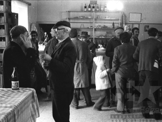 kocsma talponálló Szalon sör üveg pohár rekesz gyerek Kéty Tolna megye Magyarország 1978 Bakó JenőFotó részletei