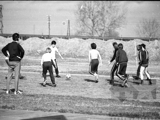 edzés diák játékos labda foci mérkőzés pálya futball iskola Szekszárd Tolna megye Magyarország 1979 Bakó Jenő