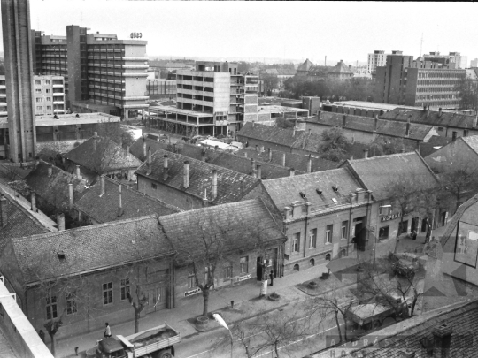 utcakép látkép panelház belváros teherautó Szekszárd Tolna megye Magyarország 1979 Bakó JenőFotó részletei