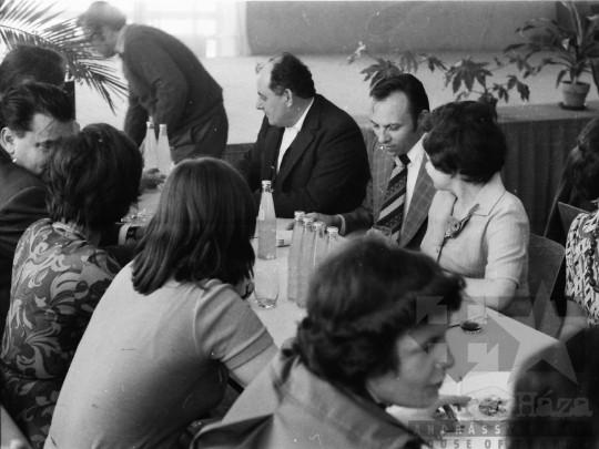 AZONOSÍTÓ: THM-BJ-00716 A rendezvény résztvevői. [A szocialista brigádmozgalom szovjet mintára az 1950-es évek végén kezdett kibontakozni Magyarországon, és rendszerváltoztatáskor szűnt meg. Kezdetben csak az ipari üzemekben és gyárakban alakultak meg a brigádok, majd az agráriumban és a hivatali szférában is létrejöttek. A mozgalom jelszava: „Szocialista módon dolgozni, tanulni és élni” volt.] HELYSZÍN: Szekszárd, Tolna megye DÁTUM: 1977 FOTÓS: Bakó Jenő