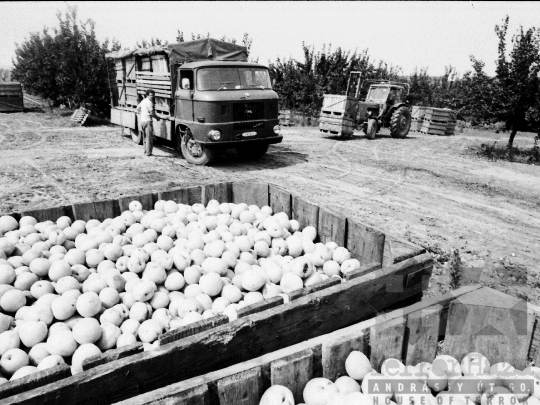 termelőszövetkezet betakarítás barack láda teherautó IFA traktor Báta Tolna megye Magyarország 1983 Bakó JenőFotó részletei