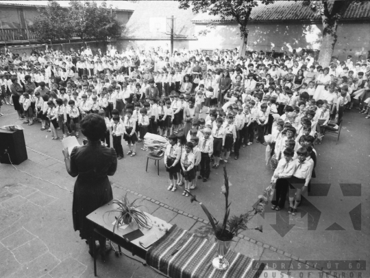 általános iskola diák iskola ünnepség évzáró ünneplő úttörő kisdobos egyenruha Szekszárd Tolna megye Magyarország 1983 Bakó JenőFotó részletei