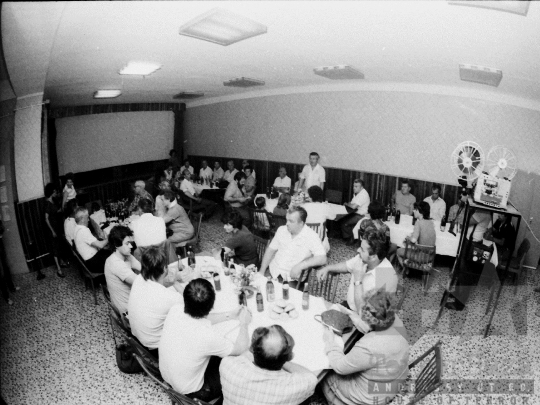 AZONOSÍTÓ: THM-BJ-00716a A rendezvény résztvevői. [A szocialista brigádmozgalom szovjet mintára az 1950-es évek végén kezdett kibontakozni Magyarországon, és rendszerváltoztatáskor szűnt meg. Kezdetben csak az ipari üzemekben és gyárakban alakultak meg a brigádok, majd az agráriumban és a hivatali szférában is létrejöttek. A mozgalom jelszava: „Szocialista módon dolgozni, tanulni és élni” volt.] HELYSZÍN: Szekszárd, Tolna megye DÁTUM: 1977 FOTÓS: Bakó Jenő