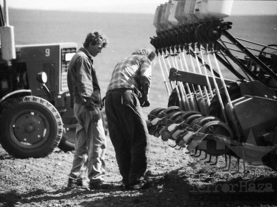 kukorica vetőmag traktor vetés vetőgép termelőszövetkezet Tamási Tolna megye Magyarország 1985 Bakó JenőFotó részletei