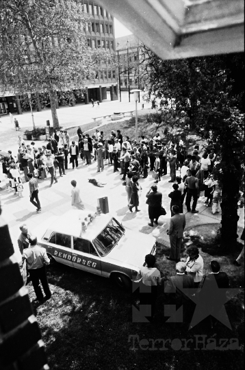 rendőrautó rendőr Lada kutya rendőrség egyenruha utcakép Szekszárd Tolna megye Magyarország 1985 Bakó JenőFotó részletei