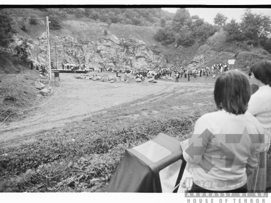 AZONOSÍTÓ: THM-BJ-00715 A rendezvény résztvevői. [A szocialista brigádmozgalom szovjet mintára az 1950-es évek végén kezdett kibontakozni Magyarországon, és rendszerváltoztatáskor szűnt meg. Kezdetben csak az ipari üzemekben és gyárakban alakultak meg a brigádok, majd az agráriumban és a hivatali szférában is létrejöttek. A mozgalom jelszava: „Szocialista módon dolgozni, tanulni és élni” volt.] HELYSZÍN: Szekszárd, Tolna megye DÁTUM: 1977 FOTÓS: Bakó Jenő