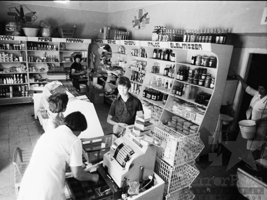 élelmiszer bolt kassza pénztár áru szárazáru vásárló népbolt konzerv papíráru pipere üzlet Mórágy Tolna megye Magyarország 1985 Bakó Jenő