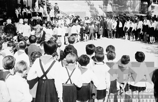 általános iskola diák iskola ünnepség évzáró ünneplő úttörő kisdobos egyenruha Szekszárd Tolna megye Magyarország 1972 Bakó JenőFotó részletei