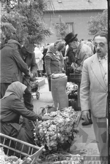 kosár áru vásárló saláta fokhagyma újhagyma zsák kofa árus piac Szekszárd Tolna megye Magyarország 1964 Bakó Jenő