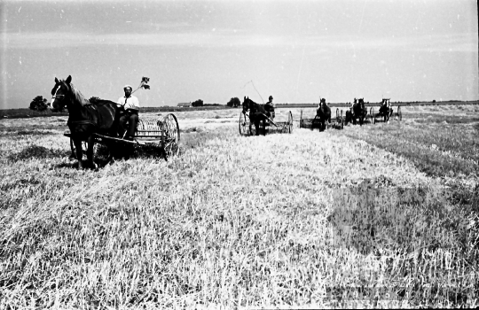 termelőszövetkezet aratás aratógép ló Bölcske Tolna megye Magyarország 1965 Bakó JenőFotó részletei