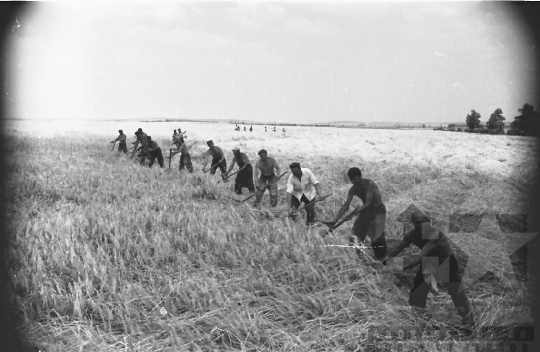 termelőszövetkezet aratás kasza gabona Bölcske Tolna megye Magyarország 1965 Bakó JenőFotó részletei
