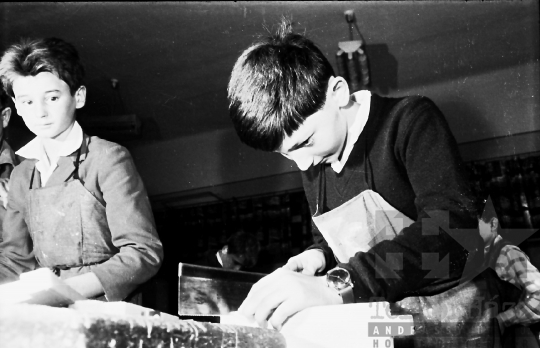 általános iskola diák iskola tanterem műhely technika óra szerszám fűrész Szekszárd Tolna megye Magyarország 1965 Bakó JenőFotó részletei