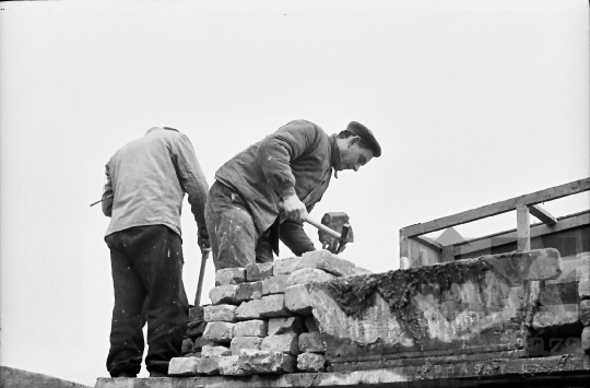 társadalmi munka építkezés családi ház kalapács svájcisapka Szekszárd Tolna megye Magyarország 1968 Bakó JenőFotó részletei