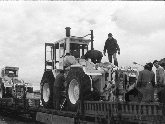 vasút traktor állami gazdaság szerelvény vasútállomás Dalmand Tolna megye Magyarország 1977 Bakó JenőFotó részletei