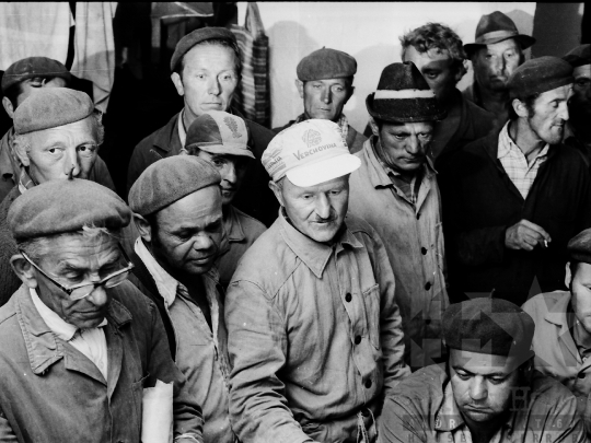 svájcisapka munkás munkásszálló gyűlés cigaretta lakhatás Dalmand Tolna megye Magyarország 1977 Bakó JenőFotó részletei