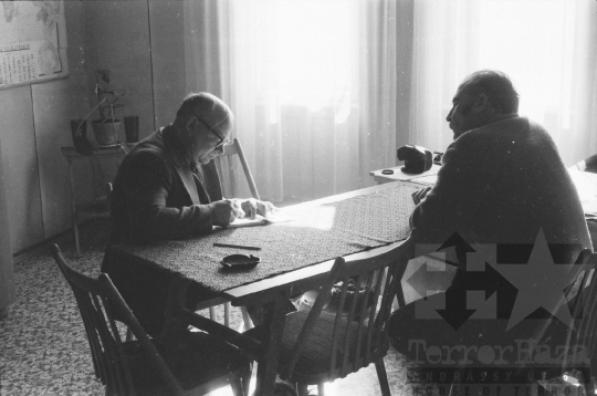 AZONOSÍTÓ: THM-BJ-00740 Zenészek asztal mellett játszanak. [TOTÉV: Tolna megyei Tatarozó és Építő Vállalat 1950. október végén a megyeszerte működő kisipari szövetkezetek összevonásával alakult meg, 1968 közepére szocialista középvállalattá nőtte ki magát Tm. Tanácsi Építőipari Vállalat néven.] HELYSZÍN: Szekszárd, Tolna megye DÁTUM: 1977 FOTÓS: Bakó Jenő