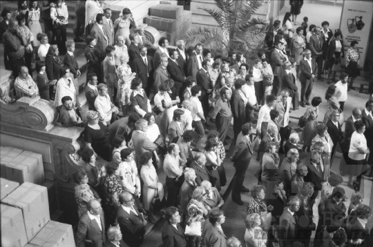 AZONOSÍTÓ: THM-BJ-00716a A rendezvény résztvevői. [A szocialista brigádmozgalom szovjet mintára az 1950-es évek végén kezdett kibontakozni Magyarországon, és rendszerváltoztatáskor szűnt meg. Kezdetben csak az ipari üzemekben és gyárakban alakultak meg a brigádok, majd az agráriumban és a hivatali szférában is létrejöttek. A mozgalom jelszava: „Szocialista módon dolgozni, tanulni és élni” volt.] HELYSZÍN: Szekszárd, Tolna megye DÁTUM: 1977 FOTÓS: Bakó Jenő