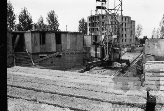 építkezés panelház panelelem lakótelep daru Tamási Tolna megye Magyarország 1978 Bakó JenőFotó részletei