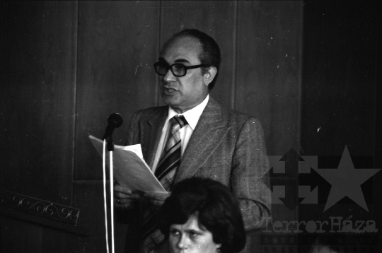 termelőszövetkezet tanács értekezlet beszéd mikrofon Budapest Pest megye Magyarország 1978 Bakó JenőFotó részletei