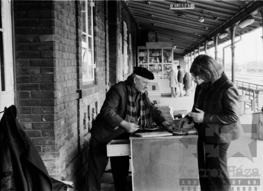 könyv árus pályaudvar peron vasút Dombóvár Tolna megye Magyarország 1978 Bakó JenőFotó részletei