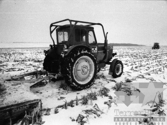 szántás traktor hó tél Hőgyész Tolna megye Magyarország 1981 Bakó JenőFotó részletei