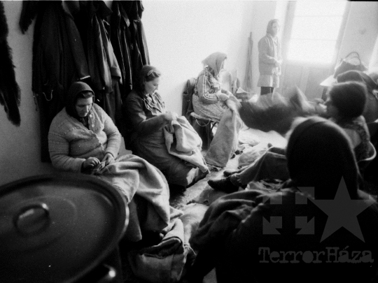 termelőszövetkezet zsák kendő kötény lábas zsákvarrás Ozora Tolna megye Magyarország 1981 Bakó JenőFotó részletei