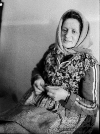 termelőszövetkezet zsák kendő kötény zsákvarrás portré Ozora Tolna megye Magyarország 1981 Bakó JenőFotó részletei