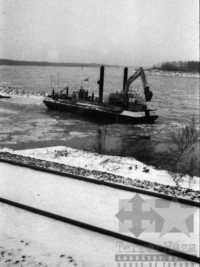 tél jég hajó sín munkagép szállítás hajózás Paks Tolna megye Magyarország 1981 Bakó Jenő