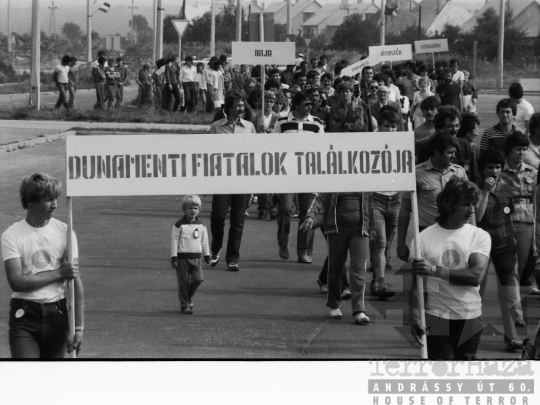 ifjúsági mozgalmi élet KISZ felvonulás transzparens Paks Tolna megye Magyarország 1983 Bakó JenőFotó részletei