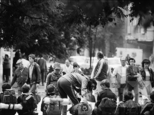 gyerek hátizsák túra kirándulás ifjúsági mozgalmi élet Szekszárd Tolna megye Magyarország 1983 Bakó JenőFotó részletei