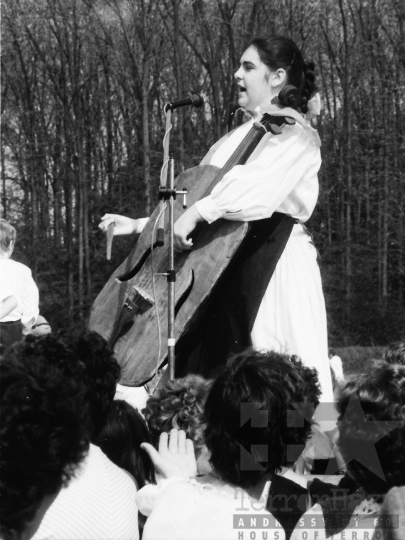 szocialista állami ünnep május 1. munka ünnepe színpad majális népviselet ütőgardon zenész Bonyhád Tolna megye Magyarország 1985 Bakó JenőFotó részletei