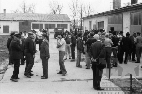 termelőszövetkezet közgyűlés udvar Felsőnána Tolna megye Magyarország 1985 Bakó JenőFotó részletei