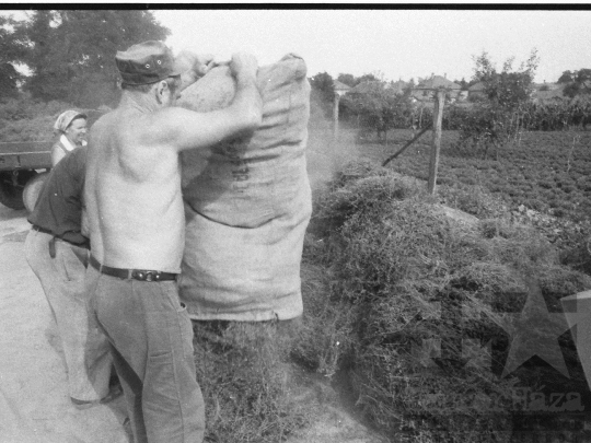gyógynövény zsák kendő Kajdacs Tolna megye Magyarország 1985 Bakó JenőFotó részletei