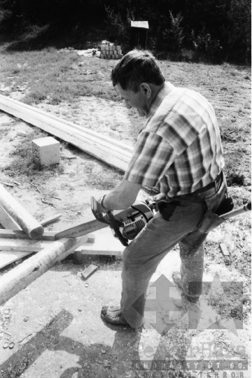 társadalmi munka építkezés családi ház gerenda fűrész udvar Mórágy Tolna megye Magyarország 1985 Bakó JenőFotó részletei