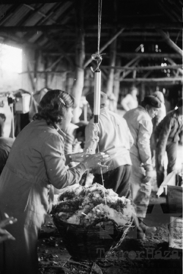 állattenyésztés juh birka mérleg gyapjú kosár Regöly Tolna megye Magyarország 1985 Bakó JenőFotó részletei