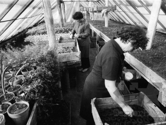 termelőszövetkezet fóliasátor kertészet palánta láda Mözs Tolna megye Magyarország 1985 Bakó JenőFotó részletei