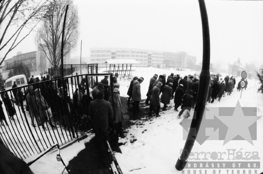 tél hó látogatás KRESZ-tábla kórház egészségügy Szekszárd Tolna megye Magyarország 1985 Bakó JenőFotó részletei
