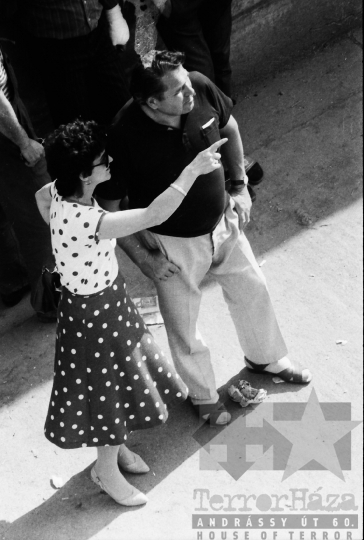 AZONOSÍTÓ: THM-BJ-00718 Néptánc produkció a színpadon - transzparenseken feliratok: "Hatékonyabb munkával a XI. pártkongresszus határozatainak következetes végrehajtásáért" "Munkánk minőségének és hatékonyságának javításával, többletvállalásokkal készülünk a NAGY OKT. SZOC. FORR. 60. évfordulójára". [Az októberi orosz forradalom (kommunista propagandában: nagy októberi szocialista forradalom) 1917. november 6–12. (október 24–30.) között zajlott, amelynek során a bolsevikok a Téli Palota ostroma után az ott székelő Ideiglenes Kormány tagjait letartóztatták, és Lenin vezetésével, akit a Népbiztosok Tanácsa elnökévé választottak, puccsal átvették a hatalmat. Hazánkban ez a nap 1950-től 1989-ig pártállami ünnep volt.] [A szocialista brigádmozgalom szovjet mintára az 1950-es évek végén kezdett kibontakozni Magyarországon, és rendszerváltoztatáskor szűnt meg. Kezdetben csak az ipari üzemekben és gyárakban alakultak meg a brigádok, majd az agráriumban és a hivatali szférában is létrejöttek. A mozgalom jelszava: „Szocialista módon dolgozni, tanulni és élni” volt.] HELYSZÍN: Szekszárd, Tolna megye DÁTUM: 1977 FOTÓS: Bakó Jenő