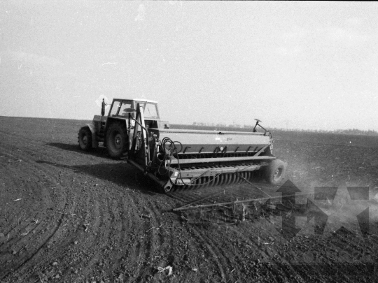 termelőszövetkezet traktoros traktor vetés vetőgép Fadd Tolna megye Magyarország 1985 Bakó JenőFotó részletei