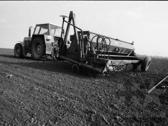 termelőszövetkezet traktoros traktor vetés vetőgép Fadd Tolna megye Magyarország 1985 Bakó JenőFotó részletei