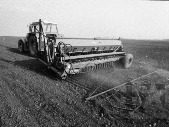 termelőszövetkezet traktoros traktor vetés vetőgép Fadd Tolna megye Magyarország 1985 Bakó JenőFotó részletei