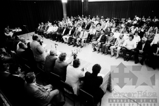 vízügy közgyűlés pódium mikrofon Szekszárd Tolna megye Magyarország 1985 Bakó JenőFotó részletei