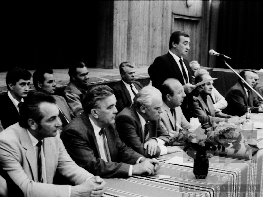 vízügy közgyűlés beszéd pódium mikrofon Szekszárd Tolna megye Magyarország 1985 Bakó JenőFotó részletei