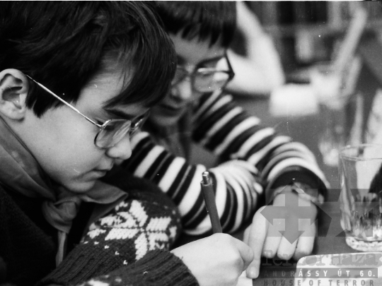AZONOSÍTÓ: THM-BJ-00740 Zenészek asztal mellett játszanak. [TOTÉV: Tolna megyei Tatarozó és Építő Vállalat 1950. október végén a megyeszerte működő kisipari szövetkezetek összevonásával alakult meg, 1968 közepére szocialista középvállalattá nőtte ki magát Tm. Tanácsi Építőipari Vállalat néven.] HELYSZÍN: Szekszárd, Tolna megye DÁTUM: 1977 FOTÓS: Bakó Jenő