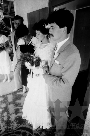 esküvő házasság család ünnep menyasszony vőlegény csokor Mórágy Tolna megye Magyarország 1986 Bakó JenőFotó részletei