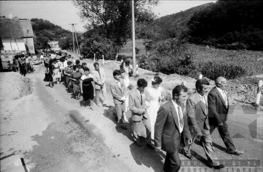 esküvő házasság család ünnep násznép menyasszony vőlegény utcakép Mórágy Tolna megye Magyarország 1986 Bakó JenőFotó részletei