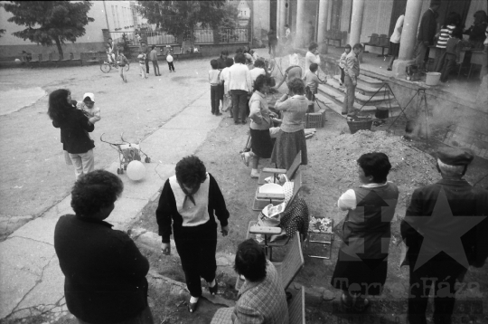 gyermeknap bogrács kempingszék művelődési ház gyerek lufi babakocsi Mórágy Tolna megye Magyarország 1986 Bakó JenőFotó részletei