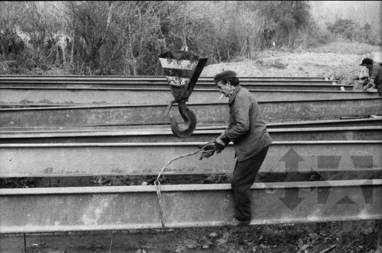 híd vasúti híd hídépítés vasgerenda darus kocsi teherautó Bátaszék Tolna megye Magyarország 1986 Bakó JenőFotó részletei