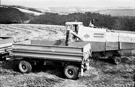termelőszövetkezet aratás gabona kombájn teherautó pótkocsi Mórágy Tolna megye Magyarország 1988 Bakó JenőFotó részletei
